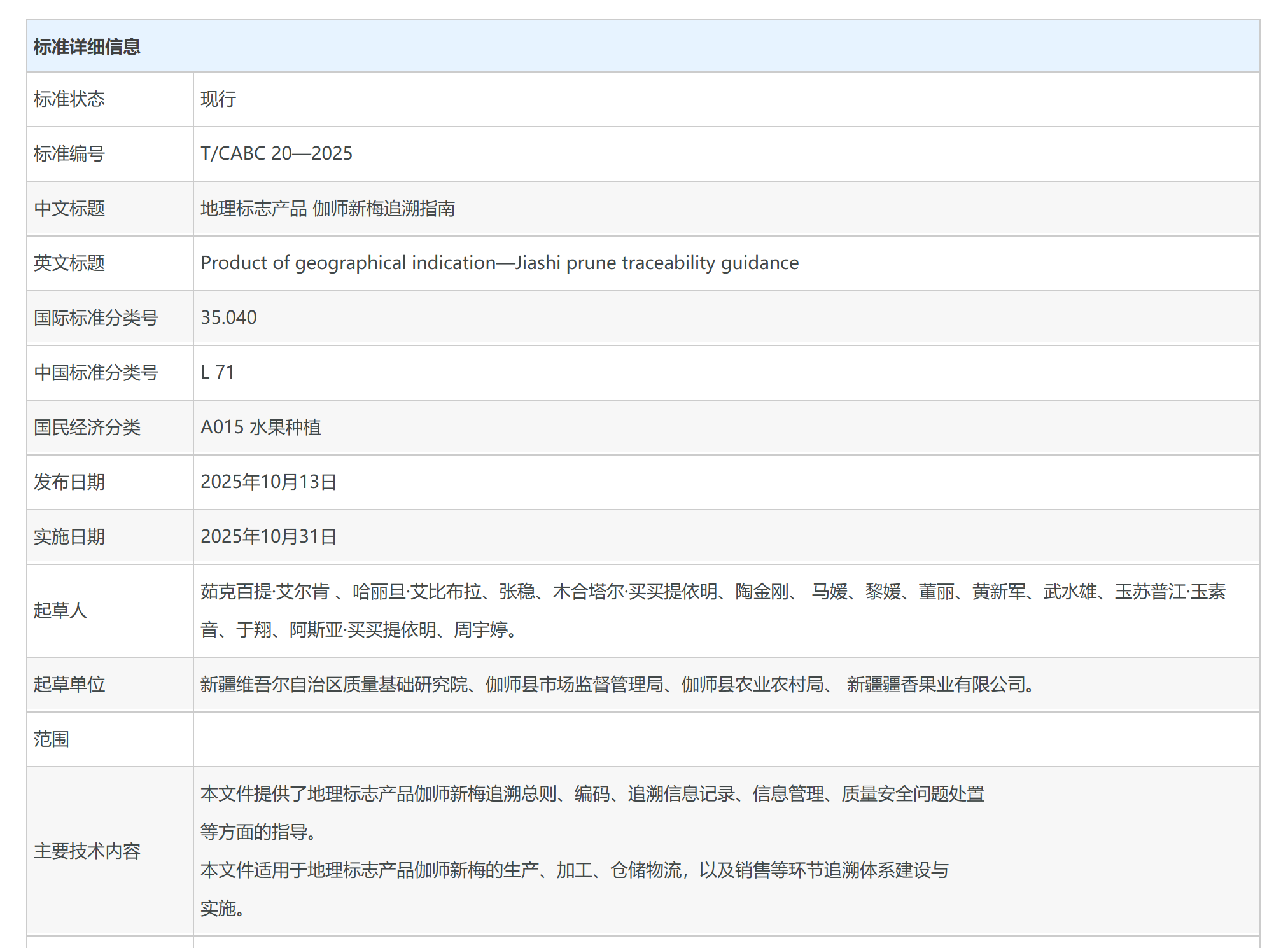 T/CABC 20—2025 地理标志产品 伽师新梅追溯指南