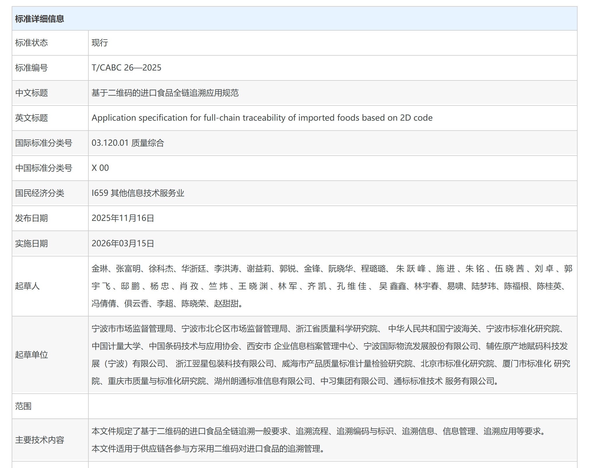 T/CABC 26—2025 基于二维码的进口食品全链追溯应用规范